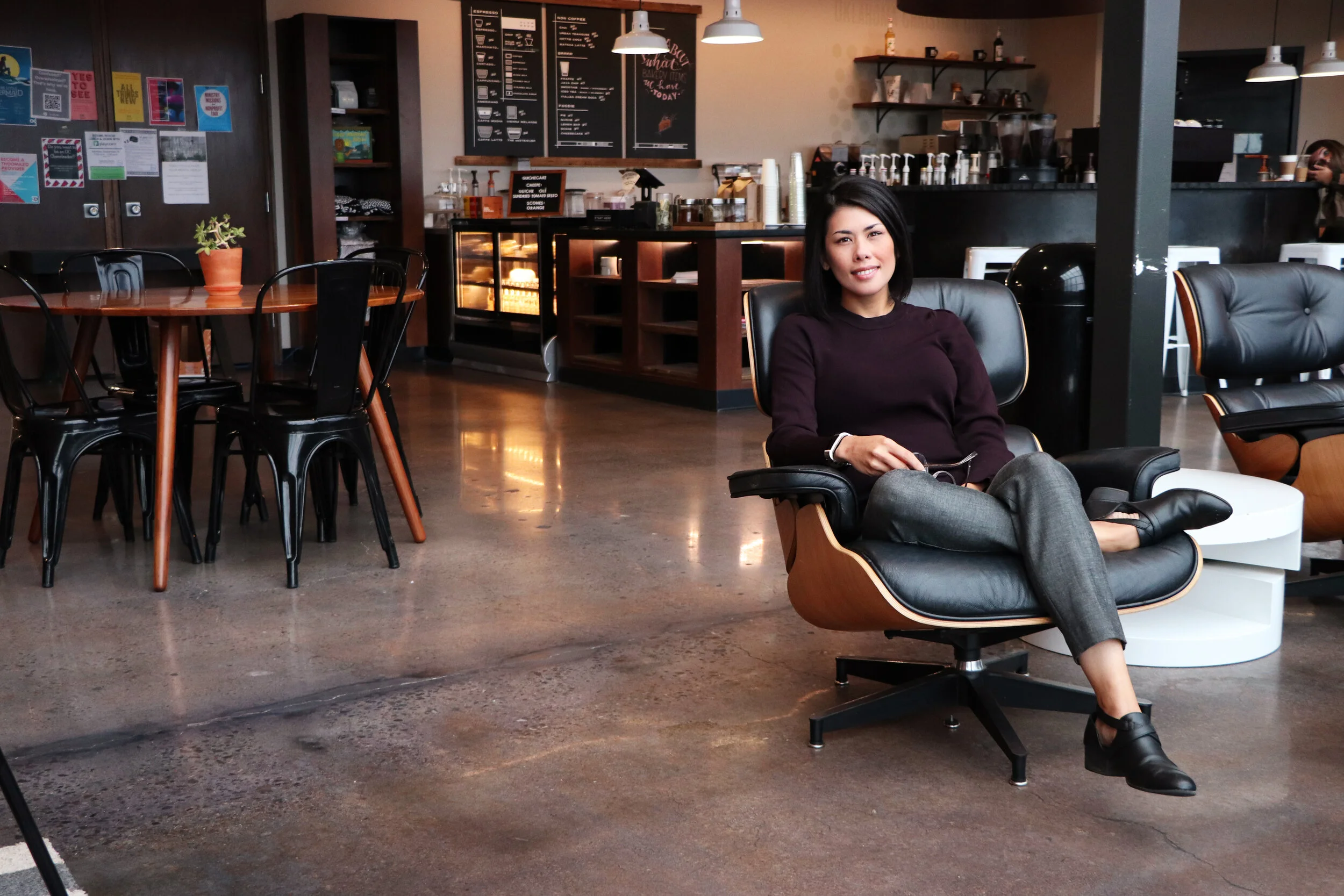 OC Gaming and Animation alumna Ellie Kirkner hanging out in The Brew.